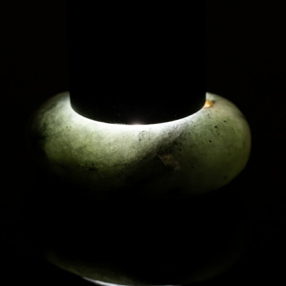 高品質グレー色ヒスイで制作した、糸魚川天然翡翠勾玉です。