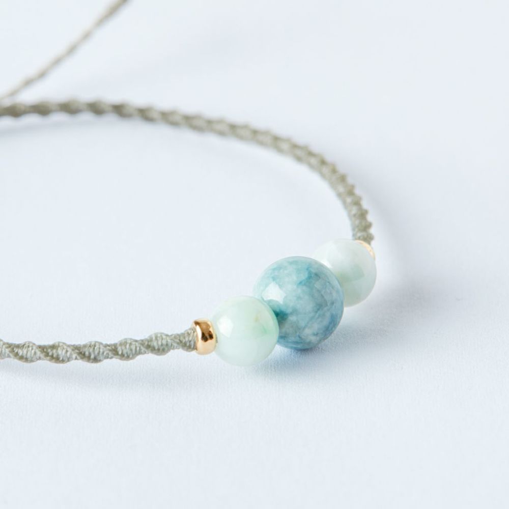 糸魚川天然翡翠で制作した3つ玉マクラメブレスレットです。