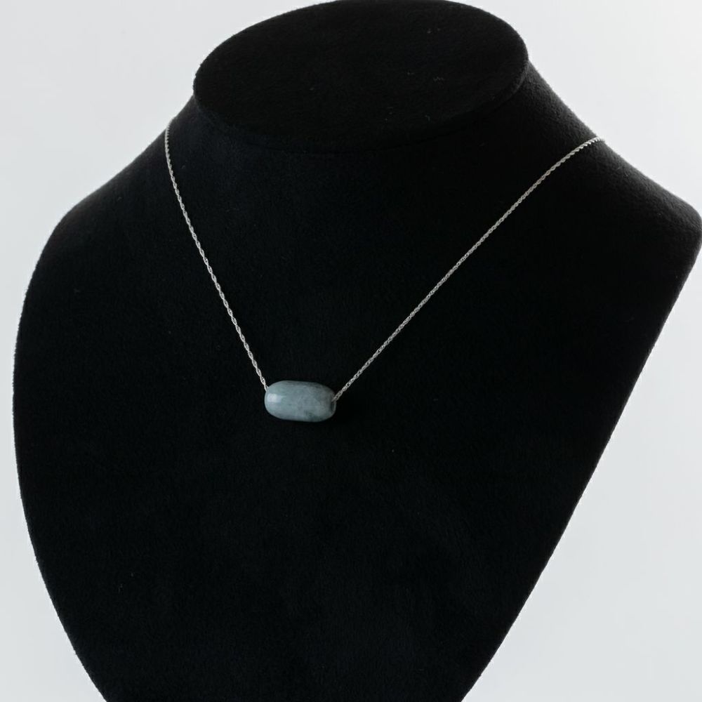 青灰色糸魚川天然翡翠で制作した管玉です。