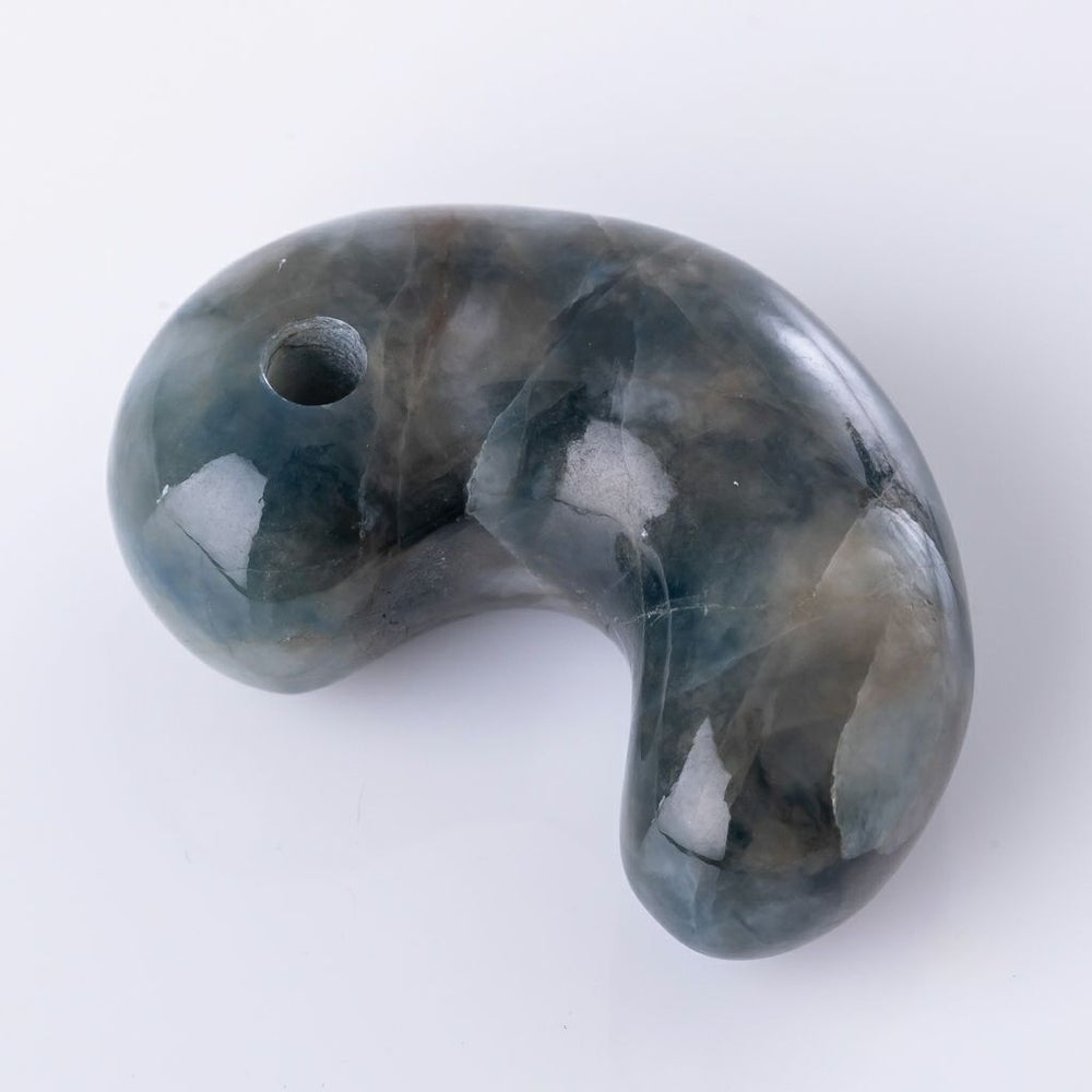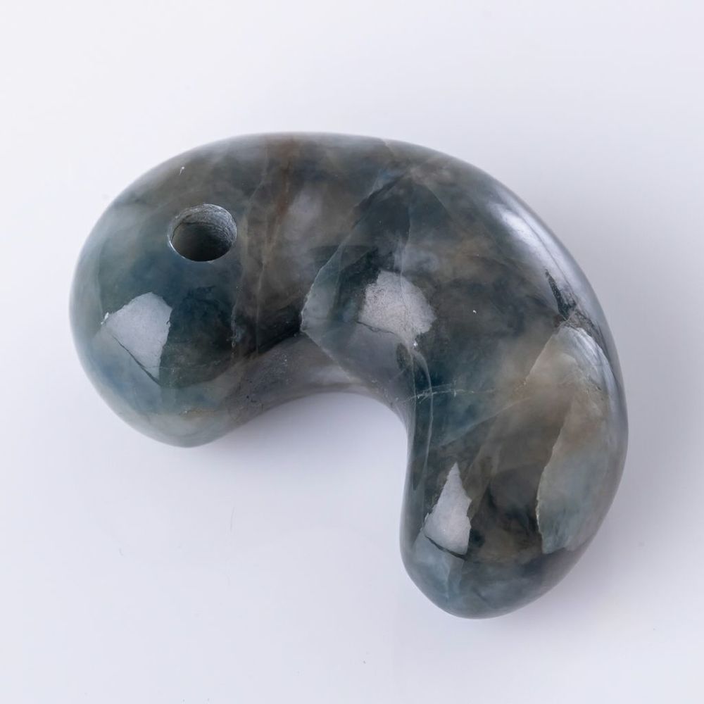 プレミアム青色ヒスイで制作した、糸魚川天然翡翠勾玉です。