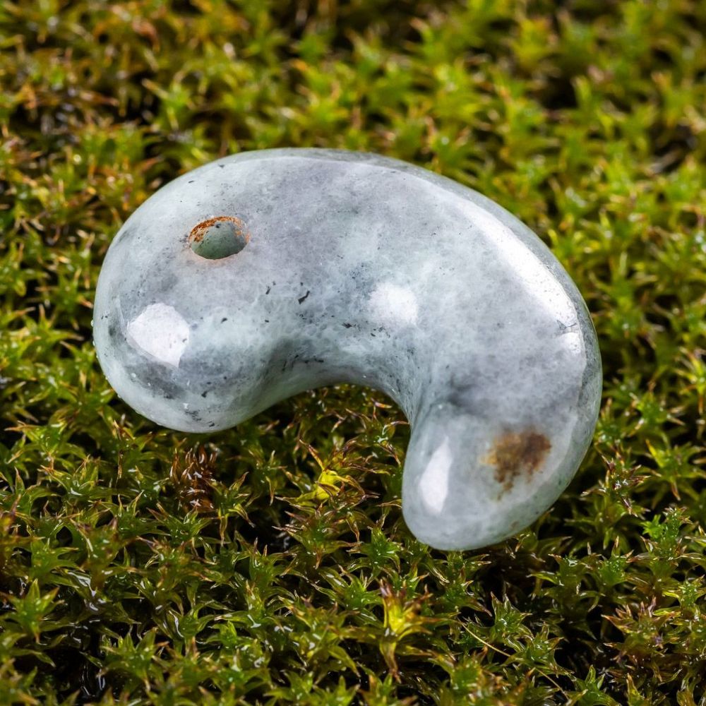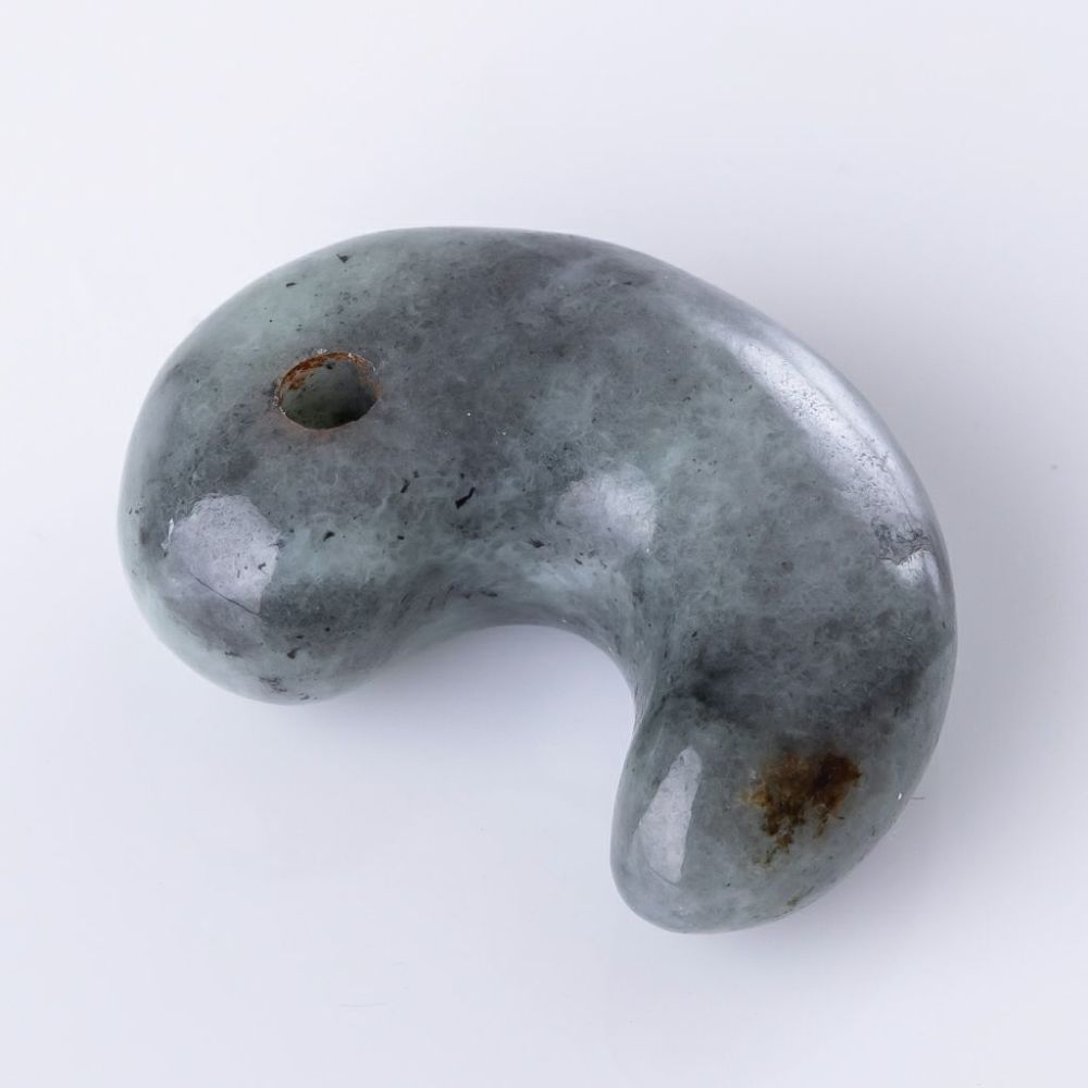 高品質グレー色ヒスイで制作した、糸魚川天然翡翠勾玉です。