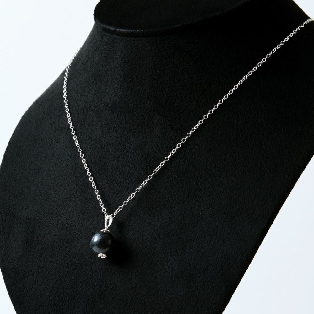 12mmの黒色翡翠玉をネックレス仕様にしました。