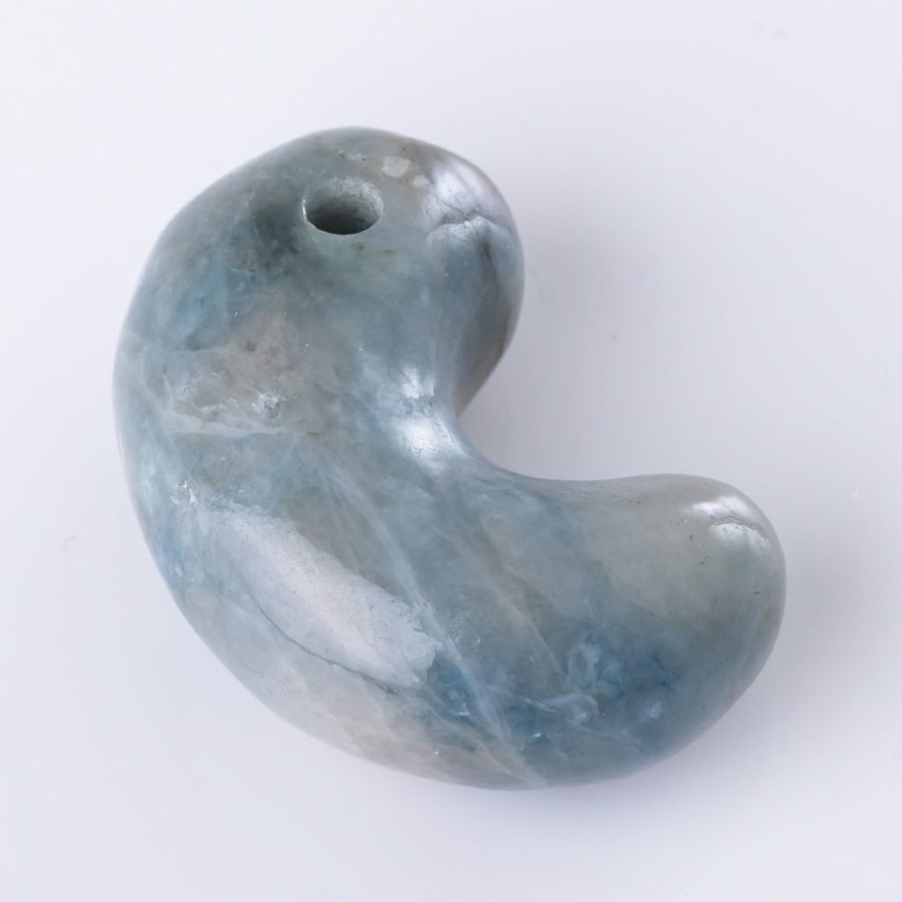 高品質青色ヒスイで制作した、糸魚川天然翡翠勾玉です。