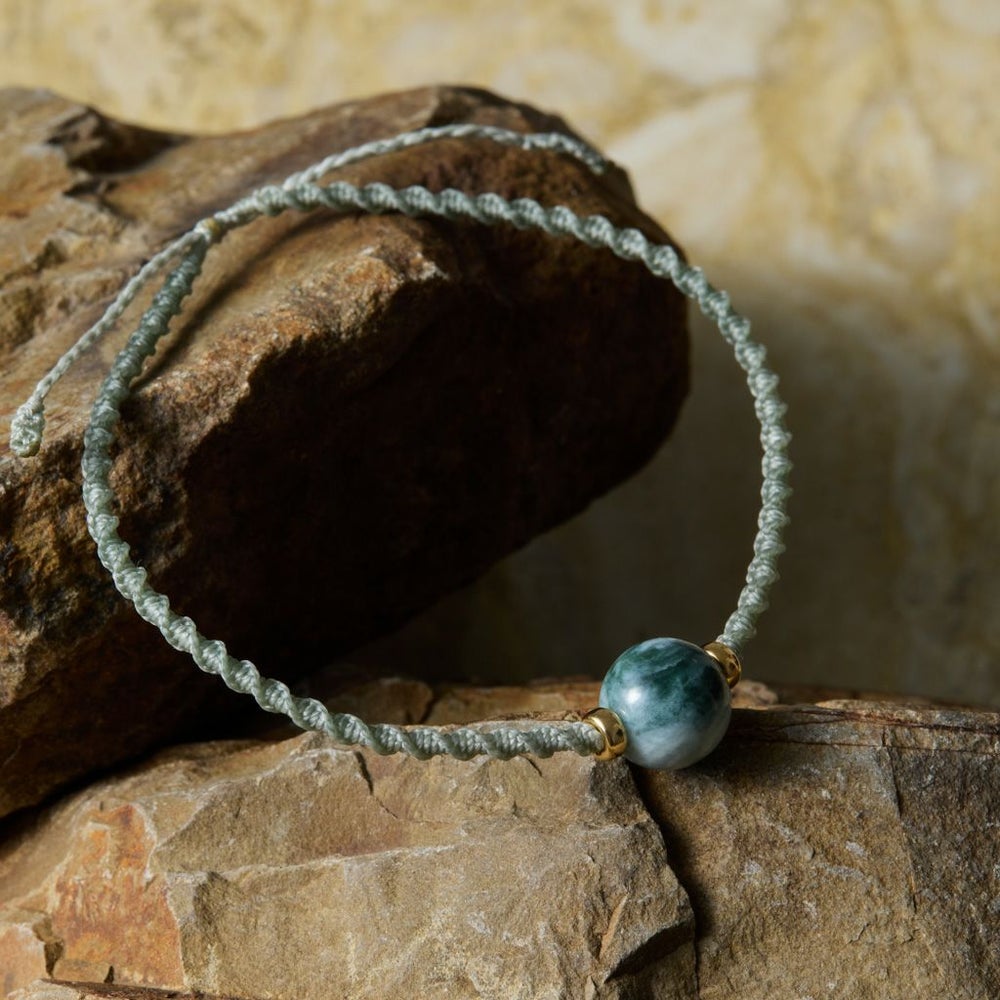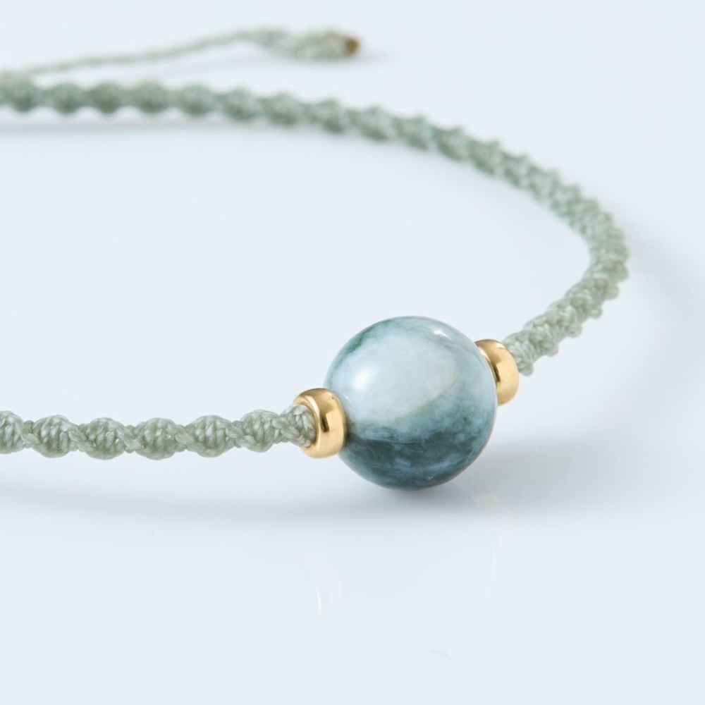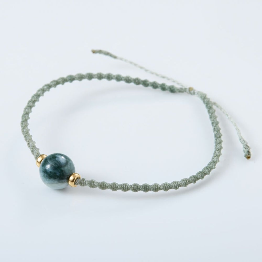 糸魚川天然翡翠で制作したマクラメブレスレットです。