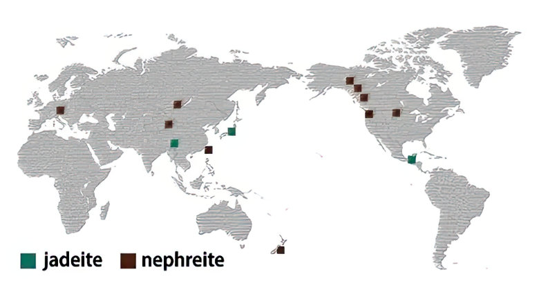Locations where jadeite and nephrite are found.