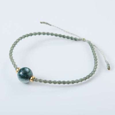 【Mサイズ(15-17cm)・10mm玉・グレー紐】(高品質青色ヒスイ)糸魚川天然翡翠マクラメブレスレットのレビューを書く